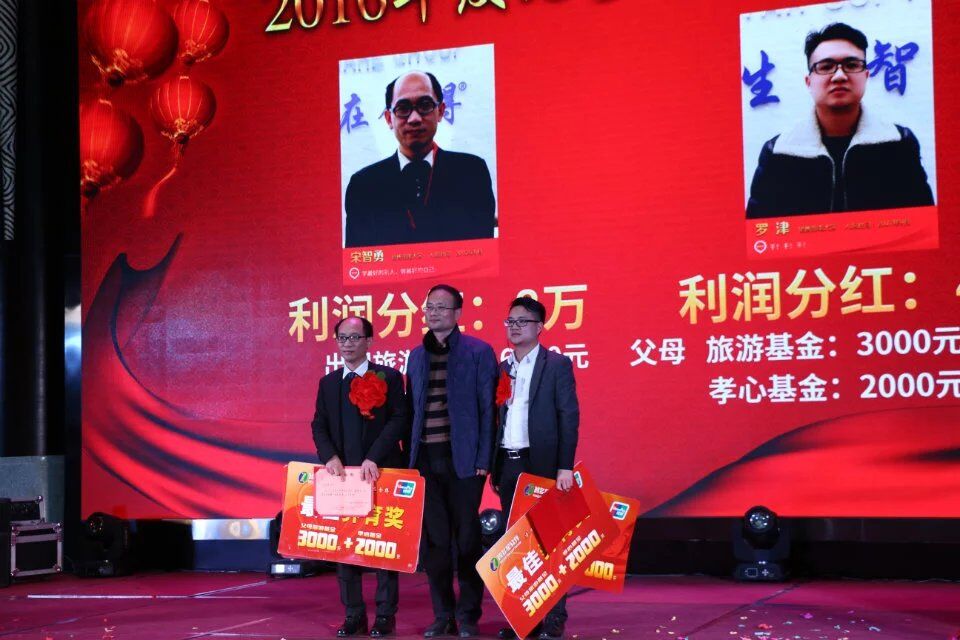 2016年度優(yōu)秀員工——優(yōu)秀銷售精英獎。他們將分別獲得6000元學習基金和6000元出國旅游基金,他們的父母還獲得價值3000元的旅游基金以及2000元的學習基金。